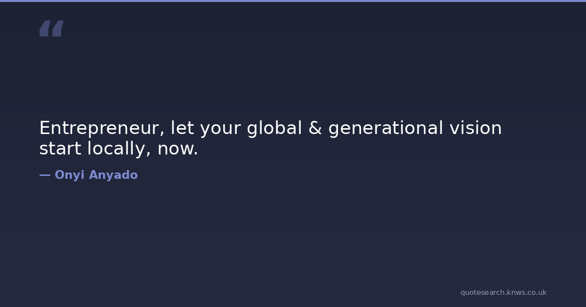 Entrepreneur, let your global & generational vision start locally, now.