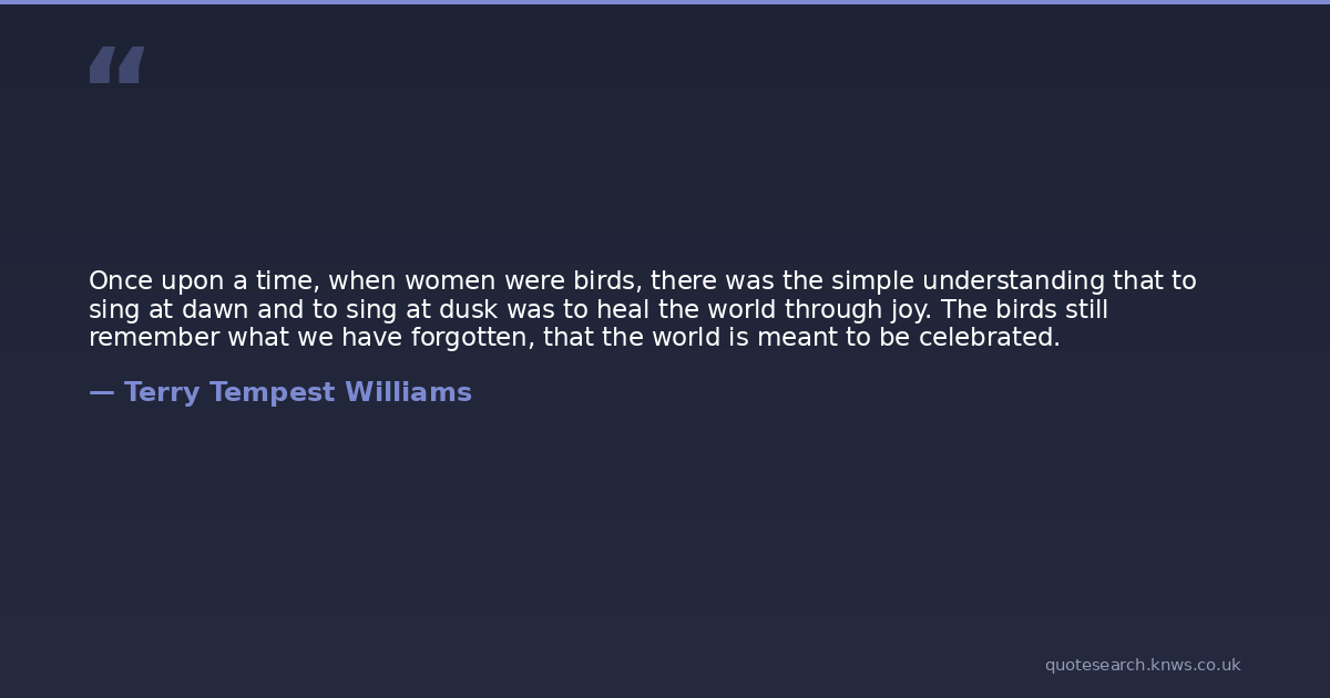 Once upon a time, when women were birds, there was the simple understanding that to sing at dawn and to sing at dusk was to heal the world through joy. The birds still remember what we have forgotten, that the world is meant to be celebrated.