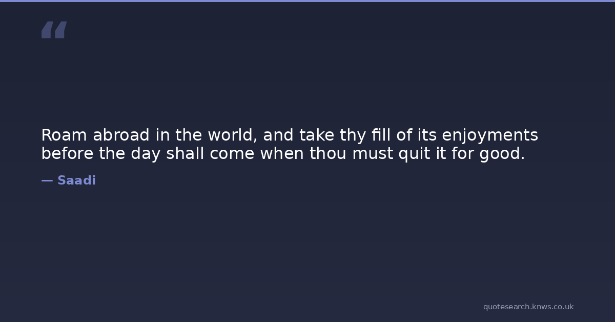 Roam abroad in the world, and take thy fill of its enjoyments before the day shall come when thou must quit it for good.