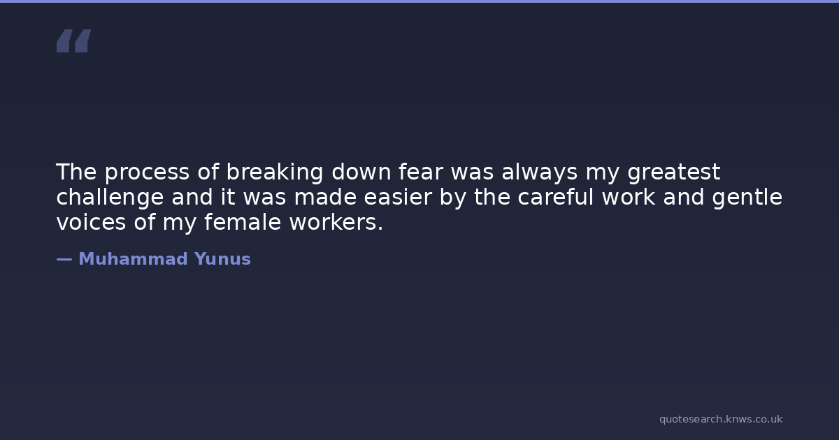 The process of breaking down fear was always my greatest challenge and it was made easier by the careful work and gentle voices of my female workers.