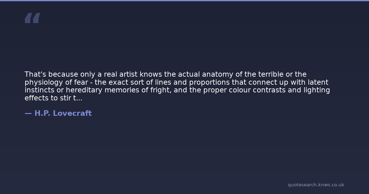 That's because only a real artist knows the actual anatomy of the terrible or the physiology of fear - the exact sort of lines and proportions that connect up with latent instincts or hereditary memories of fright, and the proper colour contrasts and lighting effects to stir the dormant sense of strangeness.