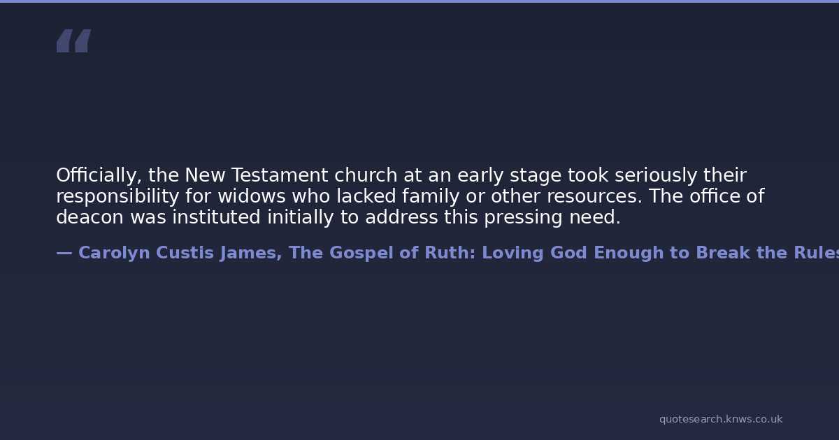 Officially, the New Testament church at an early stage took seriously their responsibility for widows who lacked family or other resources. The office of deacon was instituted initially to address this pressing need.