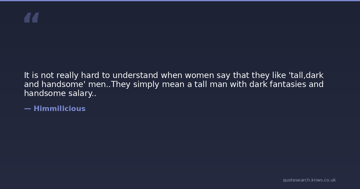 It is not really hard to understand when women say that they like 'tall,dark and handsome' men..They simply mean a tall man with dark fantasies and handsome salary..