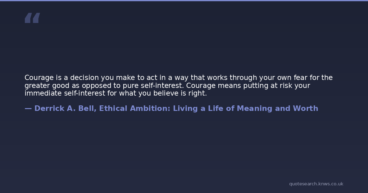 Courage is a decision you make to act in a way that works through your own fear for the greater good as opposed to pure self-interest. Courage means putting at risk your immediate self-interest for what you believe is right.
