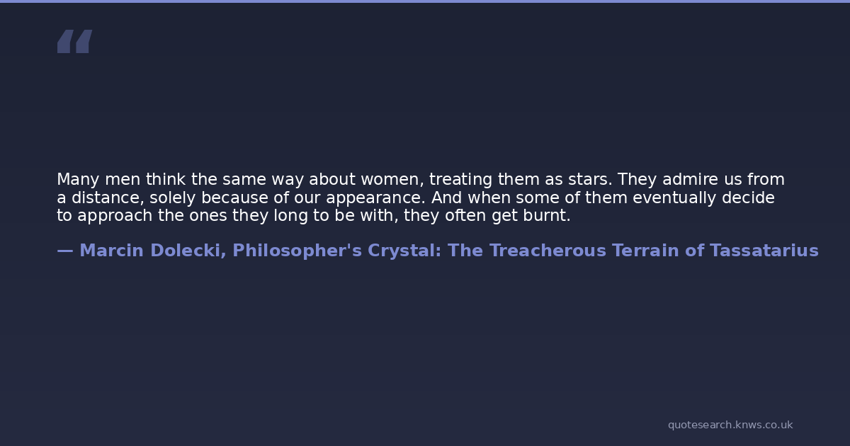 Many men think the same way about women, treating them as stars. They admire us from a distance, solely because of our appearance. And when some of them eventually decide to approach the ones they long to be with, they often get burnt.