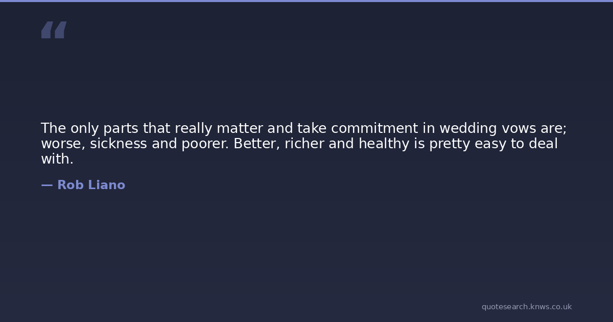 The only parts that really matter and take commitment in wedding vows are; worse, sickness and poorer. Better, richer and healthy is pretty easy to deal with.