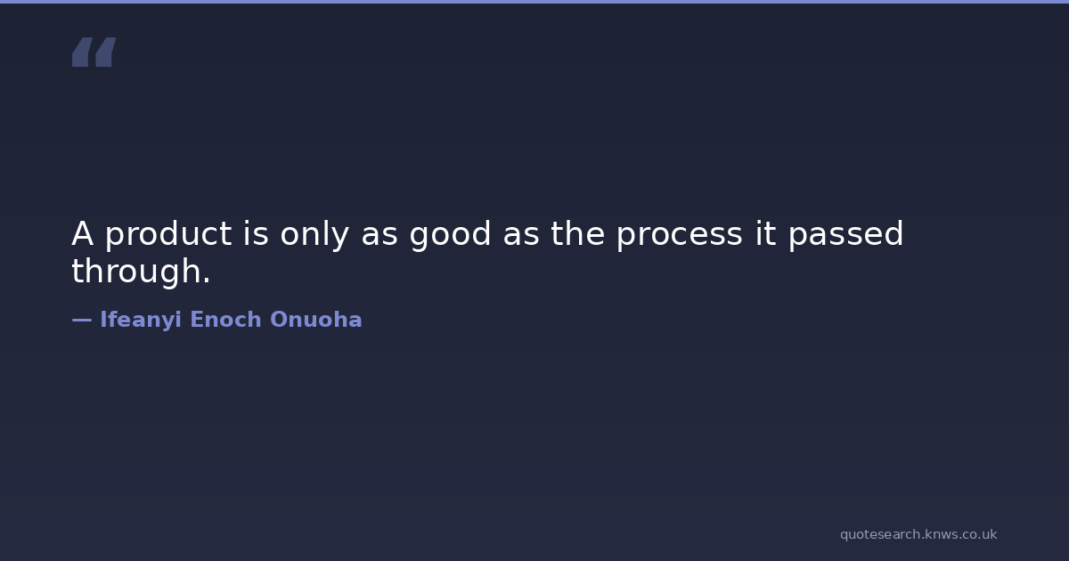 A product is only as good as the process it passed through.
