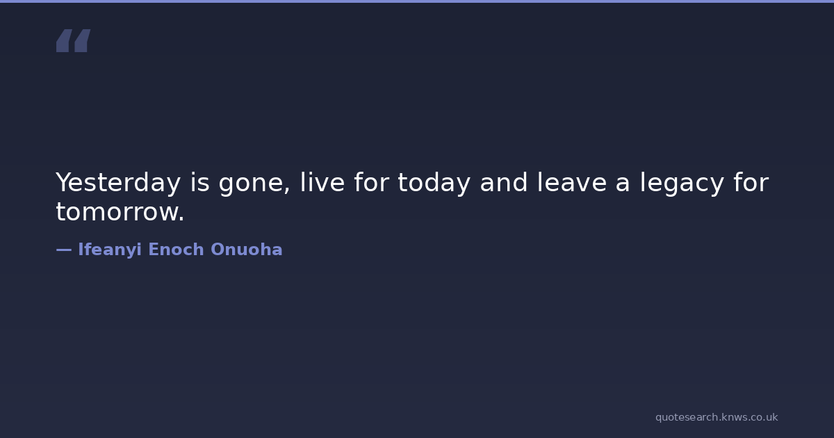 Yesterday is gone, live for today and leave a legacy for tomorrow.