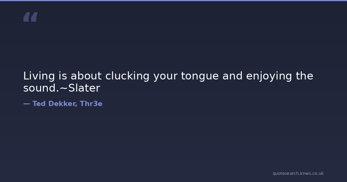 Living is about clucking your tongue and enjoying the sound.~Slater humor living slater Download Image Share on X Share on Facebook Copy Link