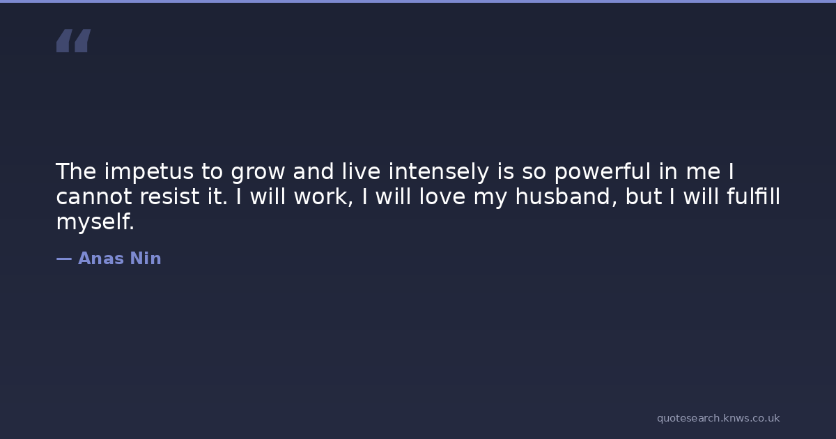 The impetus to grow and live intensely is so powerful in me I cannot resist it. I will work, I will love my husband, but I will fulfill myself.