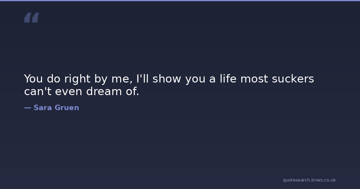 You do right by me, I'll show you a life most suckers can't even dream of.