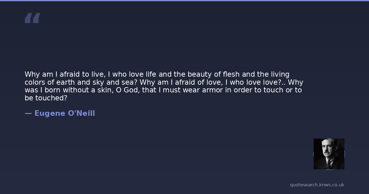 Why am I afraid to live, I who love life and the beauty of flesh and the living colors of earth and sky and sea? Why am I afraid of love, I who love love?.. Why was I born without a skin, O God, that I must wear armor in order to touch or to be touched?