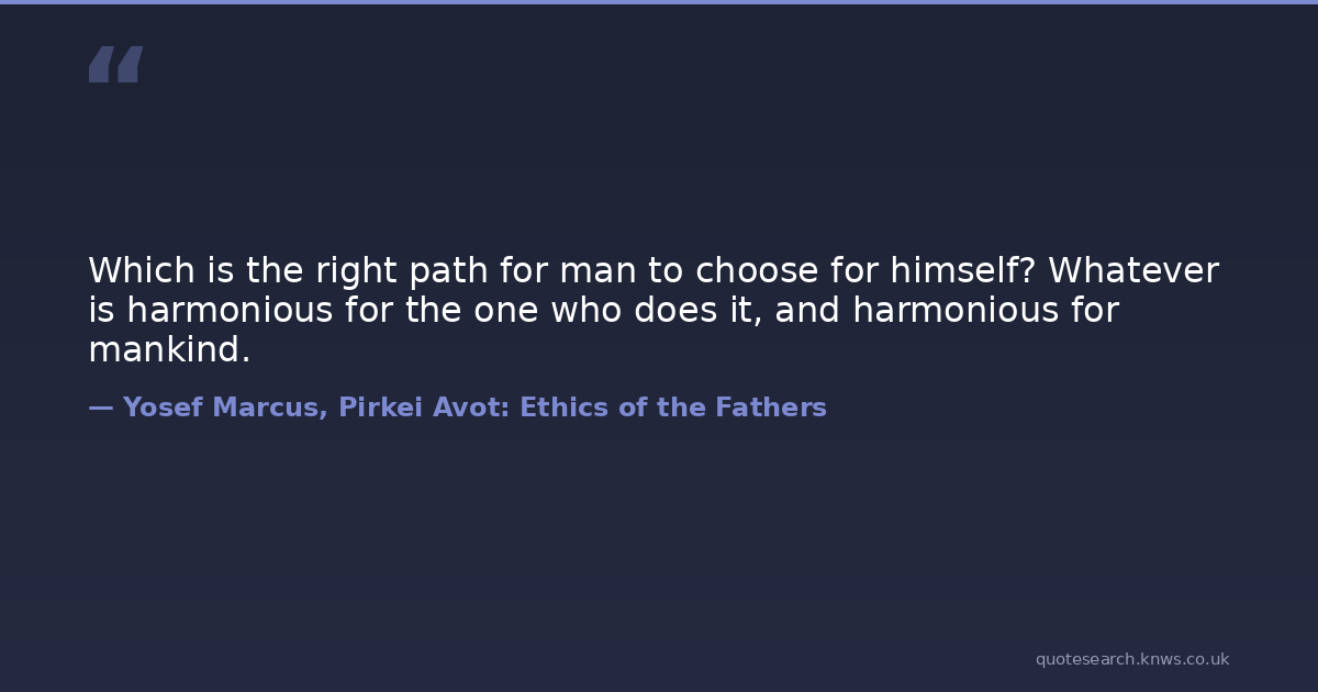 Which is the right path for man to choose for himself? Whatever is harmonious for the one who does it, and harmonious for mankind.