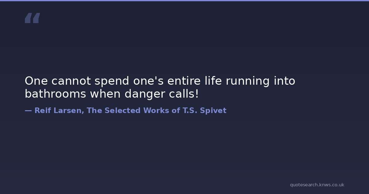 One cannot spend one's entire life running into bathrooms when danger calls! bathrooms danger fear Download Image Share on X Share on Facebook Copy Link